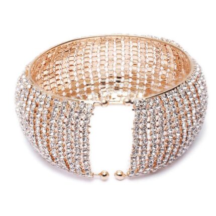 Shining Diva Fashion 18K Gold Plated Stainless Steel Openable Crystal Bracelet | Cuff Bangle | Friendship Couple Wedding Gifts for Mother Sister Wife Girlfriend | Anti Tarnish Jewellery