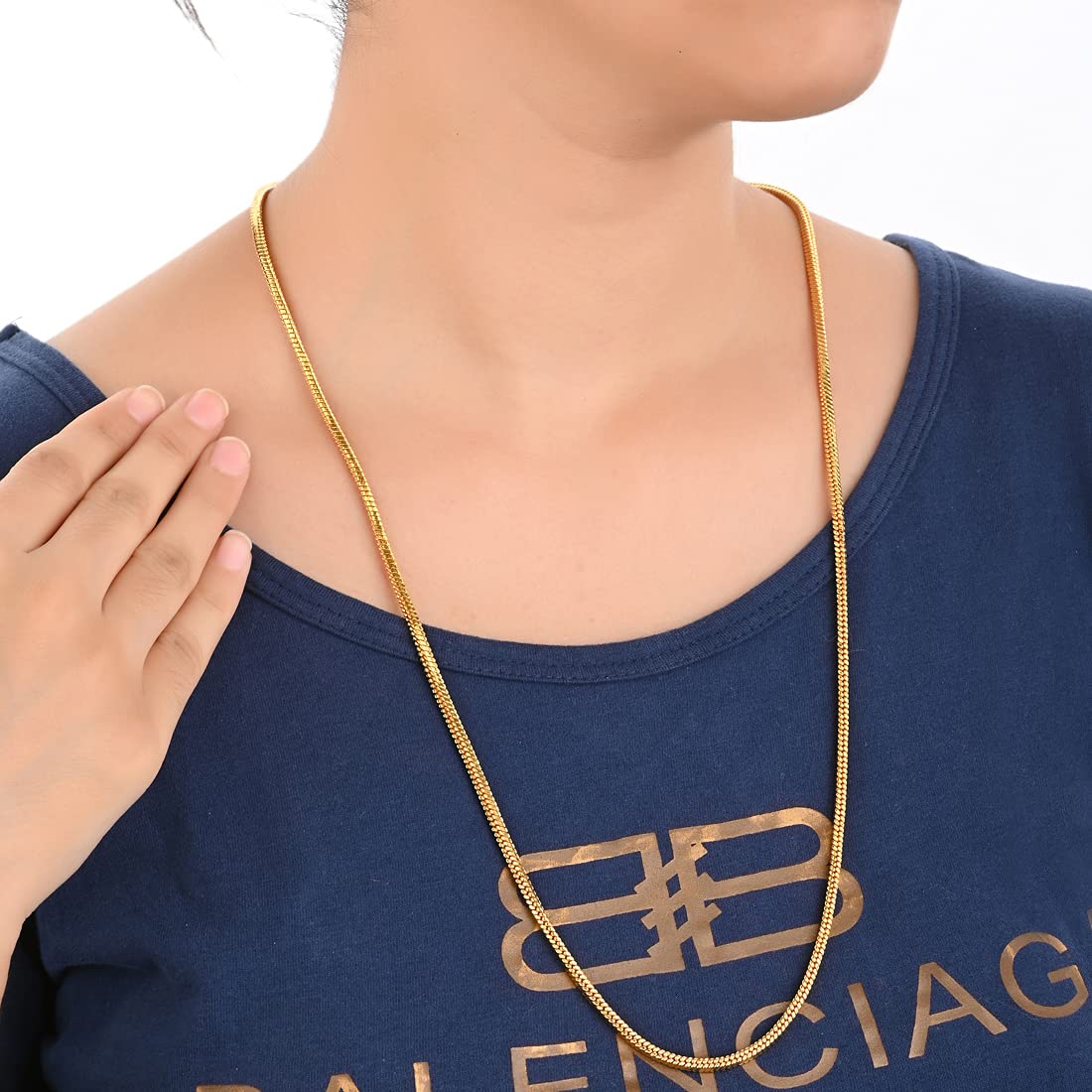 Aanya Centric Offers Exquisite Gold Plated Brass Neck Chains That Are Perfect For Special Occasions. Our Chains Are Made With High-Quality Materials And Craftsmanship, Ensuring That They Will Last For Years To Come. This Chain Is Thick Enough To Get Noticed. Chain Is Highly Durable Apart From Looking Very Stylish. It Is Laminated For Better Life Of Color And Shine. Highly Durable Chain With Beautiful Design – Perfect For Upgrading Your Casual Look. Aanya Centric Chains Are The Best Way To Elevate Your Casual Look And Bring Out The Fashionista In You! We Are Manufacturer of Layered Necklace For Women Locket For Men Long Mangalsutra For Women Mask Chain Mask Chain For Kids Mask Chains For Women Pearl Choker Silver Chain Silver Necklace For Women Pendant For Girls Silver Chains For Women Silver Jewellery Locket For Girls Pendant For Women Mangalsutra For Women Stylish New Silver Chain Men Gold Mangalsutra Pendant For Men Stone Necklace Pearl Necklace Evil Eye Necklace Diamond Necklace Key Chains Car Key Chain.