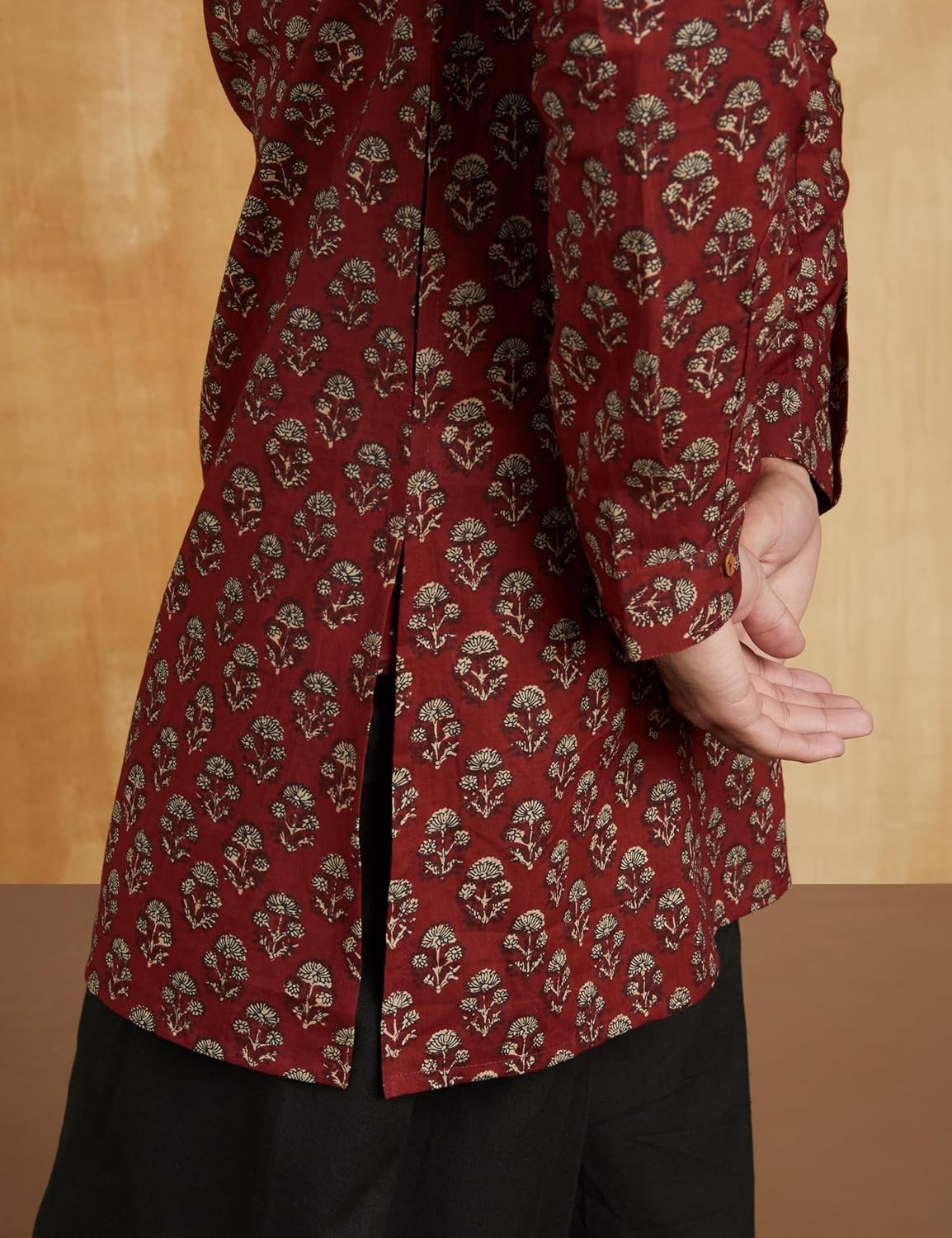 Studio Shringaar Men’s Cotton Blend Relaxed Fit Ikat Printed Knee Length Kurta