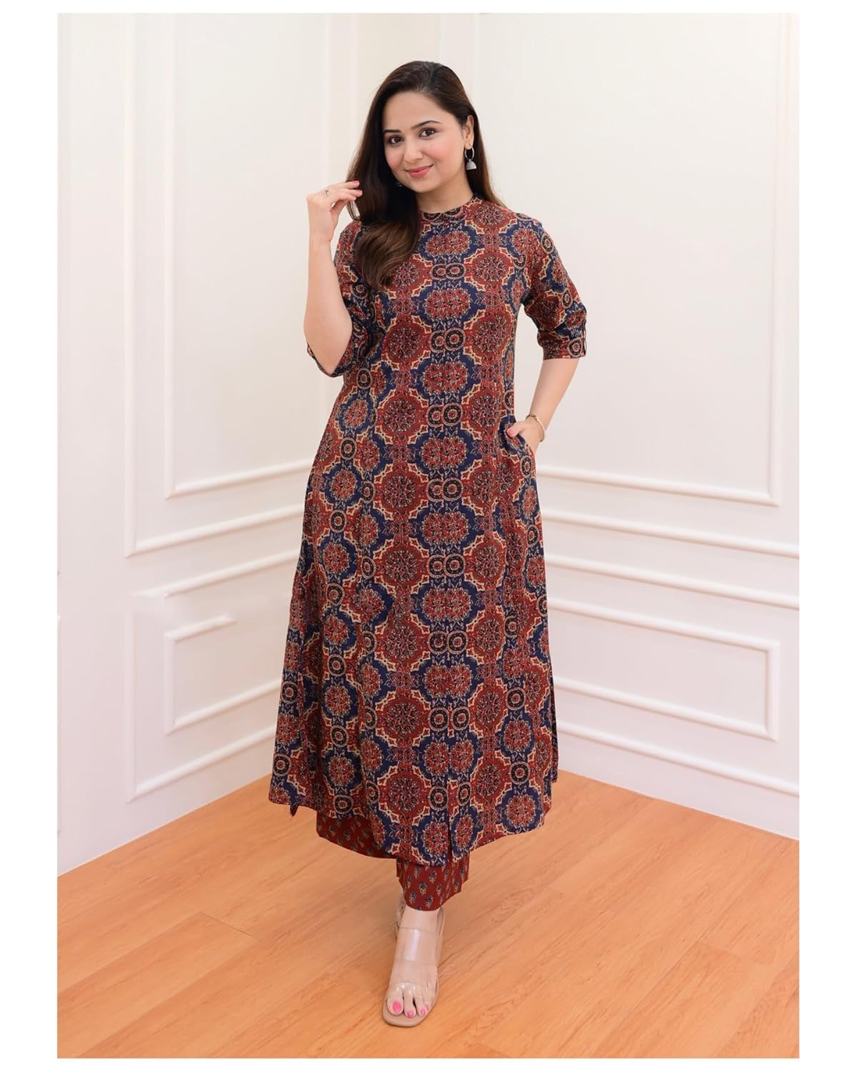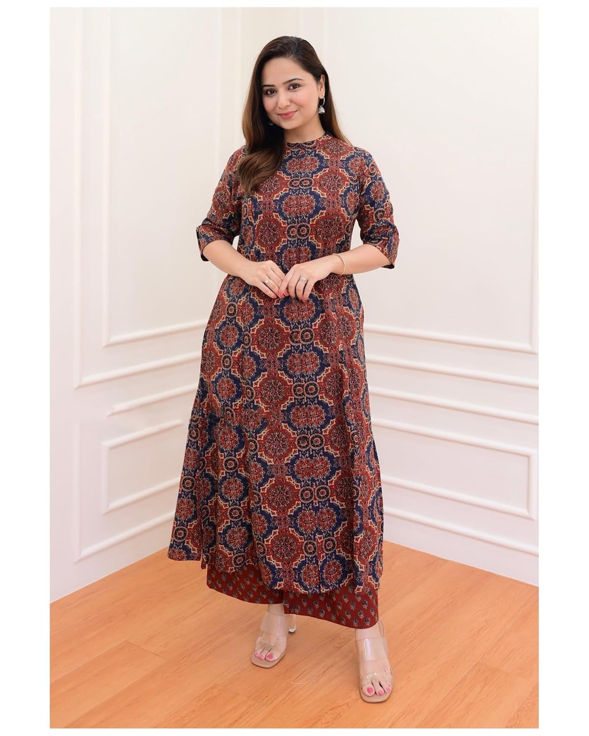 ANNI DESIGNER Women’s Cotton Blend Straight Printed Kurta with Palazzo (ABP Maroon-NW_S_Wine_Small)