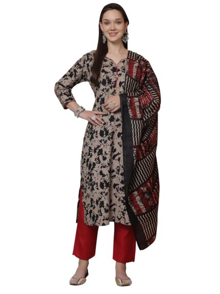 Rajnandini Women's Cotton Blend Abstract Printed Kurta Set with Dupatta (JOPLST243-P_Beige and Black) ₹2,663.00 Original price was: ₹2,663.00.₹568.00Current price is: ₹568.00.