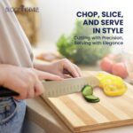 KNIFE-FRIENDLY VEGETABLE CHOPPING BOARD : Our chopping pad’s wooden surface is gentle on your knives, helping maintain their sharpness and longevity. Our bamboo wooden cutting board for kitchen is gentle on knife blades, reducing the need for frequent sharpening. The soft, forgiving surface of wooden chopper is gentle on your knives, extending their lifespan. Equipped with a hole for easy storage and convenient access, this choppingboard will save your valuable counter space.