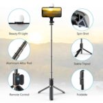 【FILL LIGHT AND REMOTE】Introducing our versatile phone tripod stand with built-in three modes of warm, cold, and warm+cold light, offering six brightness levels to fulfill all your needs. Equipped with a Bluetooth remote control with a range of 10m and Bluetooth V4.0, it is also travel-friendly and can be taken on the plane.