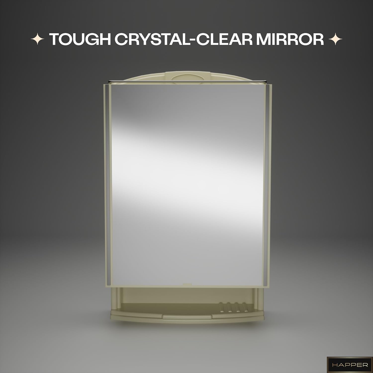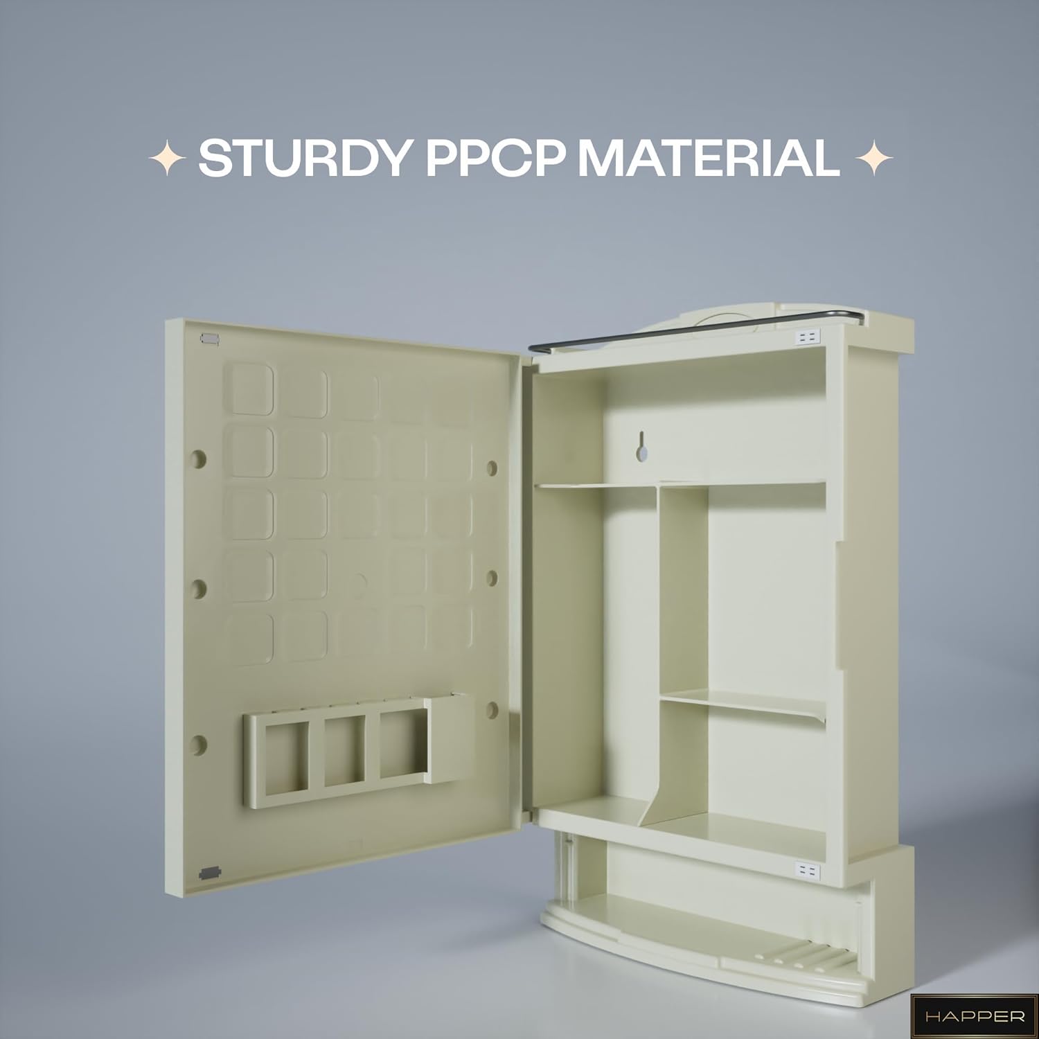 Happer Plastic Premium Multipurpose Wall Mounted Storage Cabinet with Mirror, Prime Look (Ivory)
