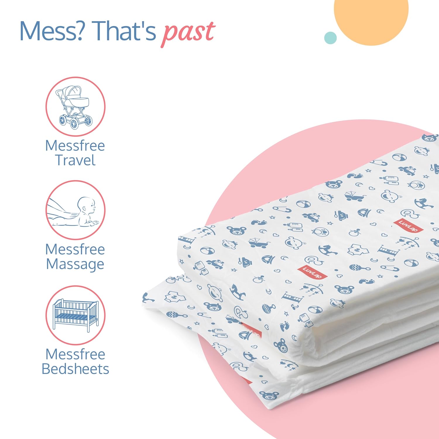 Discover LuvLap Disposable Underpads: the ultimate solution for hassle-free diaper changes. Super absorbent, leak-proof, and versatile, they keep your baby comfortable while simplifying cleanup. Perfect for on-the-go parents who demand convenience and quality. Make parenting easier with LuvLap!