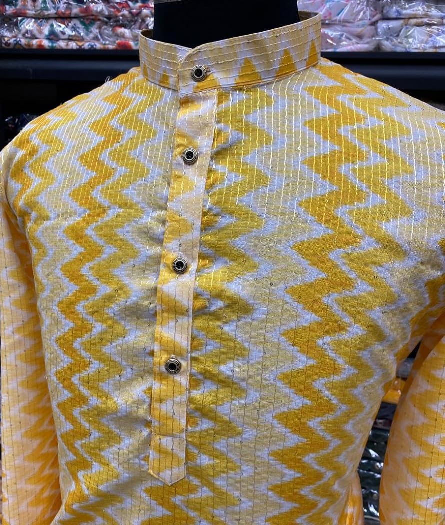 Men’s Cotton Pure Soft Cotton Kurta with Embroidery Mirror Work is the perfect addition to any man’s wardrobe for special occasions such as weddings, formal events, or cultural celebrations. Crafted from high-quality cotton, this kurta is both comfortable and stylish, ensuring you’ll look your best while feeling your best. This kurta features intricate embroidery work on the front and sleeves, adding a touch of elegance to the overall design. The embroidery is skillfully done, featuring detailed and elaborate patterns that are sure to catch the eye of anyone in the room.