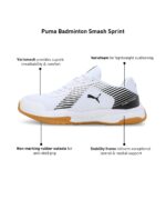 PRODUCT STORY: Ready for the smash? Experience the revolution of Variofoam, offering a lightweight cushion that propels you to leap and lunge with ease. The Variomesh upper envelopes your feet in unparalleled breathability and comfort, keeping you cool as the match heats up. Designed with a non-marking outsole for flawless movement and a stability frame that delivers exceptional lateral and medial support, these shoes are the ultimate ally in every intense rally. Details: Heel type: Flat Shoe width: Regular fit Shoe pronation: Neutral Heel-to-toe-drop: 0 mm Textile upper Non-marking rubber outsole. Suitable for use on indoor surfaces. Low boot Lace closure Variofoam for a lightweight cushioning sensation Variomesh provides superb breathability and comfort Stability frame for lateral and medial support PUMA cat logo branding