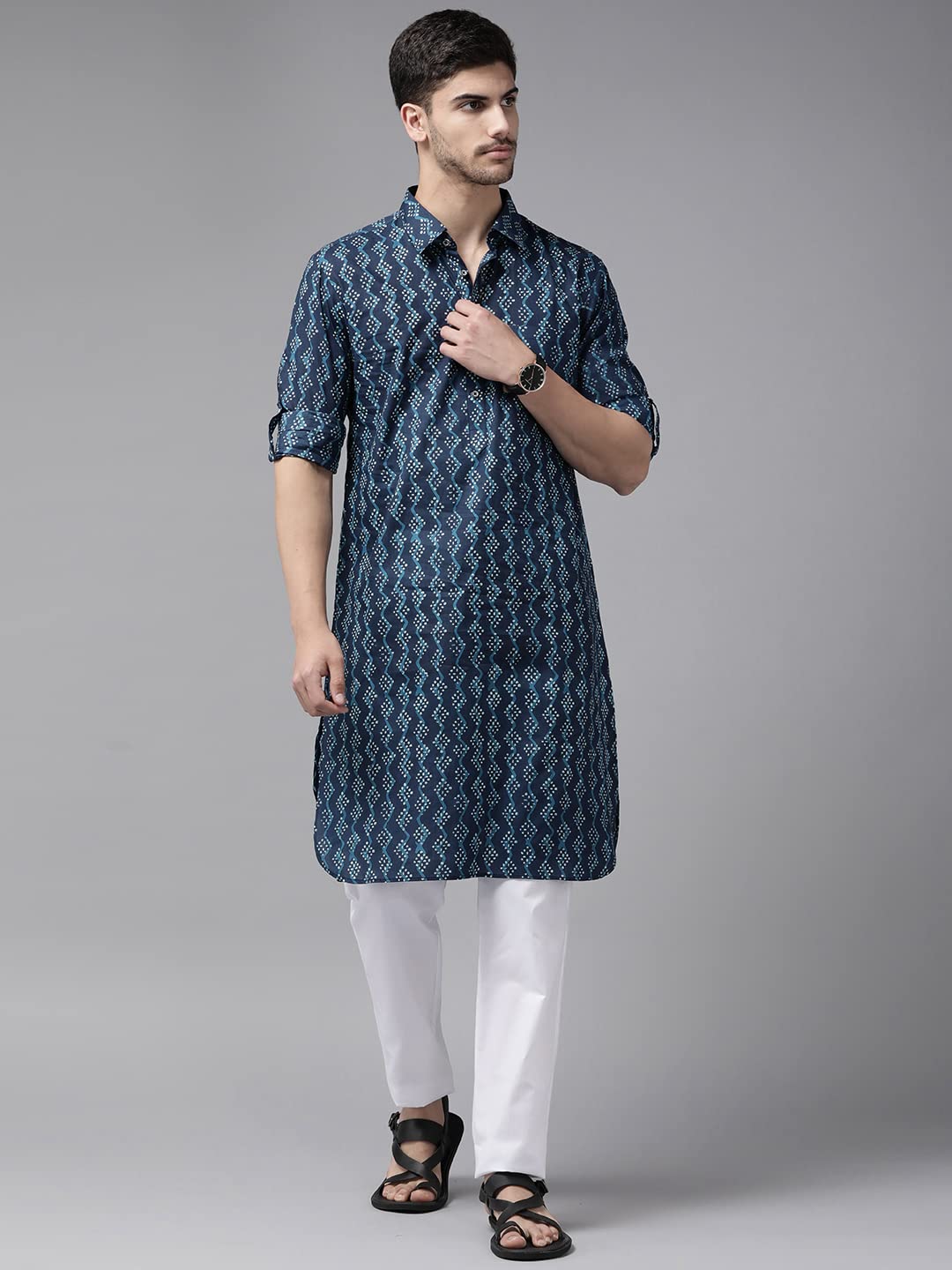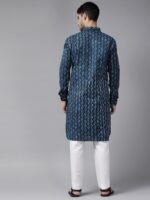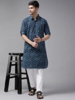 Home Fashion Mens Fashion See Designs Men’s Indigo Regular Pure Cotton Pathani Printed Men’s Kurta