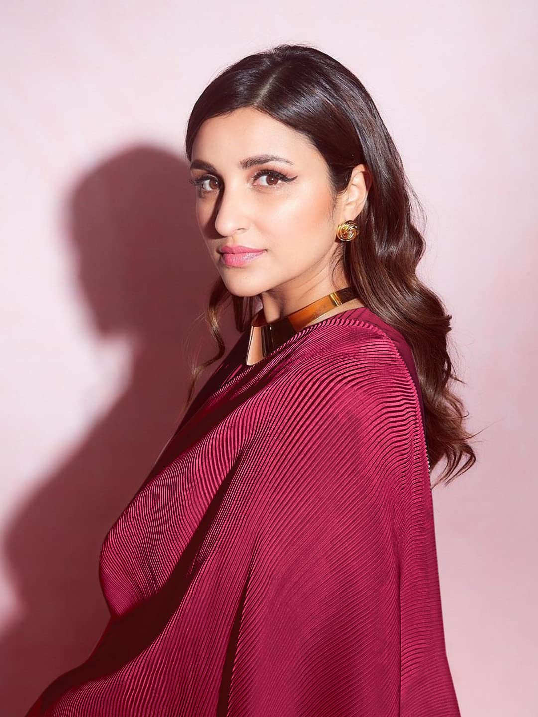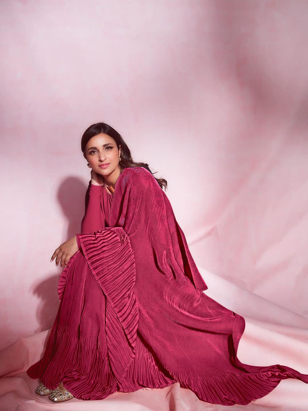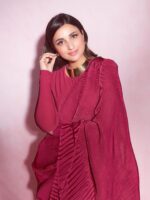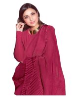 Parineeti Chopra New Top Trending Crush/Pleated Soft Fabric Chinon Saree With Unstitched Blouse Piece