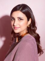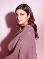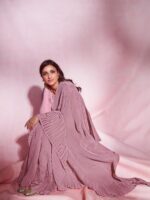 Parineeti Chopra New Top Trending Crush/Pleated Soft Fabric Chinon Saree With Unstitched Blouse Piece