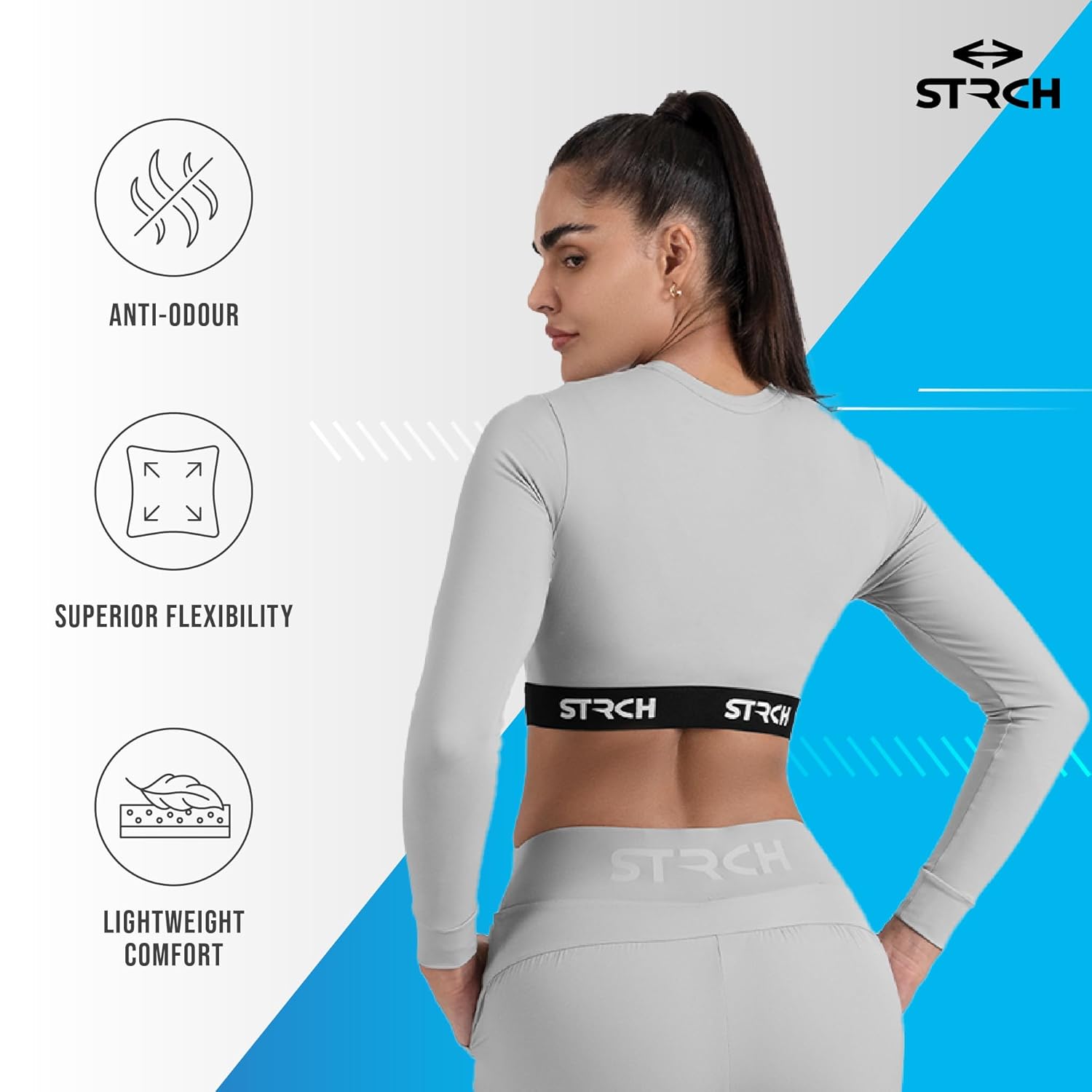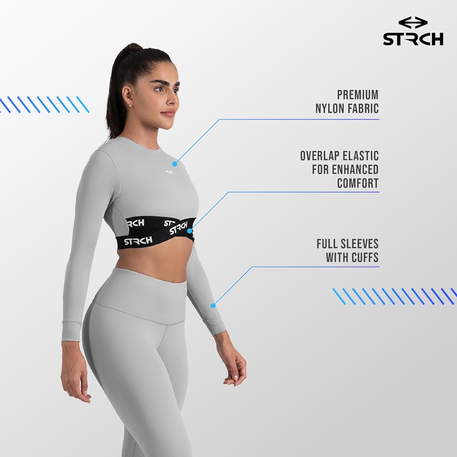 A full sleeved crop top with overlap elastic support to give you that confidence in your ative lifetsyle. Made with breathable, flexible & sweat-wicking fabric, try this for your next HIIT or weight training session.