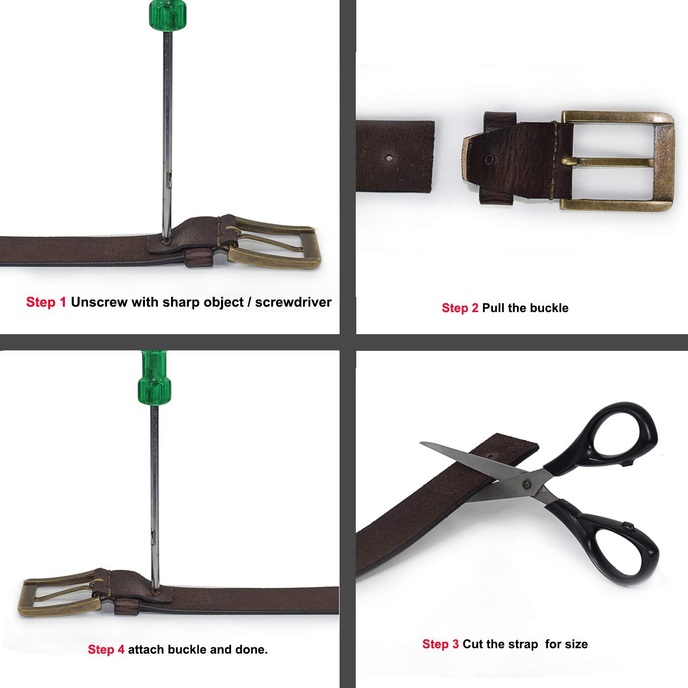 Gone are the days, when you have to go through a rigorous and hassled process to make the belt fit according to your waist size. Now, in just 4 easy steps you can make the belt fit for your size. Your belt will be ready instantly.