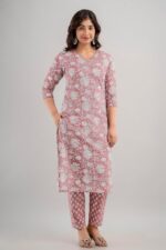 GoSriKi Women’s Cotton Blend Straight Printed Kurta with Pant