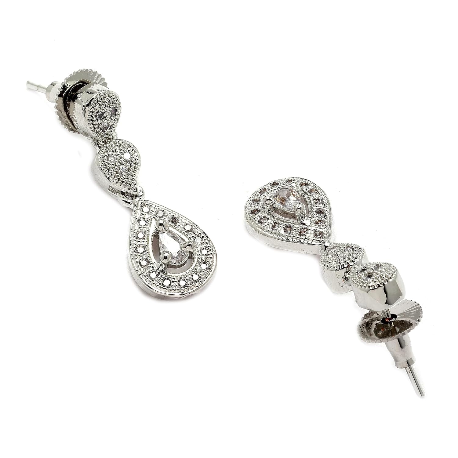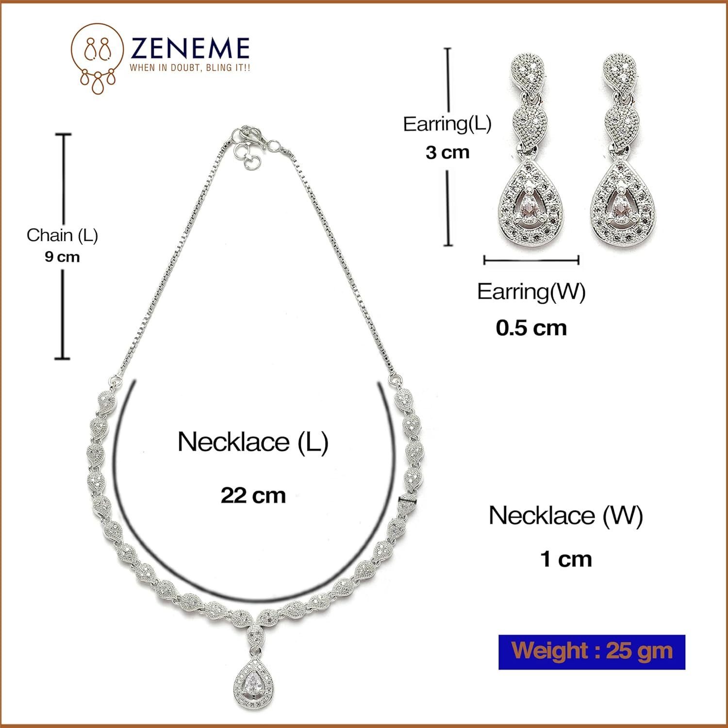 Complete your beautiful looks with this beautiful American Diamond necklace set and get an overall gorgeous appearance. This stunning necklace set features sheeny gold tone and embellishment of adorable American Diamond. Wear it on parties and special occasions and amaze everyone with your looks. Studded with shimmery and delicate American Diamond by Zeneme, this necklace set is a perfect combination of traditional and contemporary design. The Look is Stunning and Preciously Suitable for all Kinds of Dressy Occasions.Jewelry adds Lavishing look to any clothing. Any fabulous outfit is incomplete without matching jewelry. A woman is completely dressed with wearing matching jewellery. The best gift for someone special.