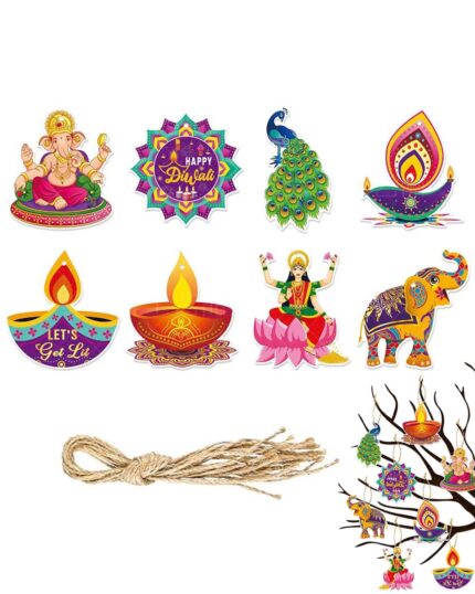 8 Pieces Diwali Decoration Items for Home Decor, Diwali Decoration Items, Diwali Decor, Diwali New Year Inauguration Wedding Festival Home Decor (8 Styles+Hemp Rope)